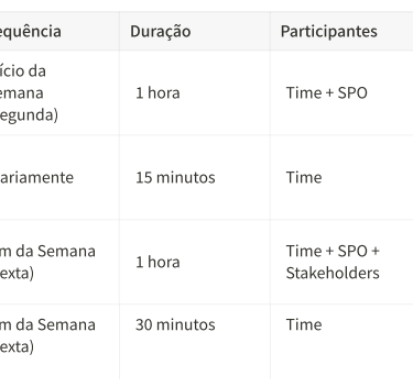 1.Seleção de Itens: O SPO apresenta os itens mais prioritários do Backlog. O time seleciona as tarefas que podem ser realmente concluídas na semana.